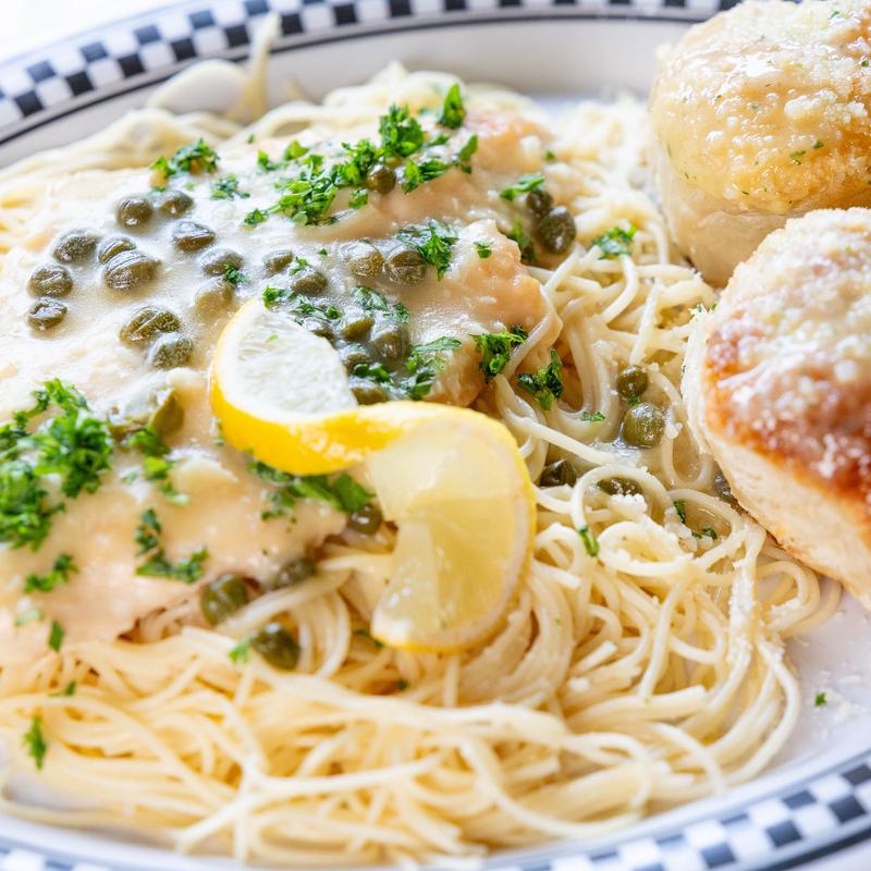 Scallopini, sautéed garlic, capers, served in a white wine lemon butter.